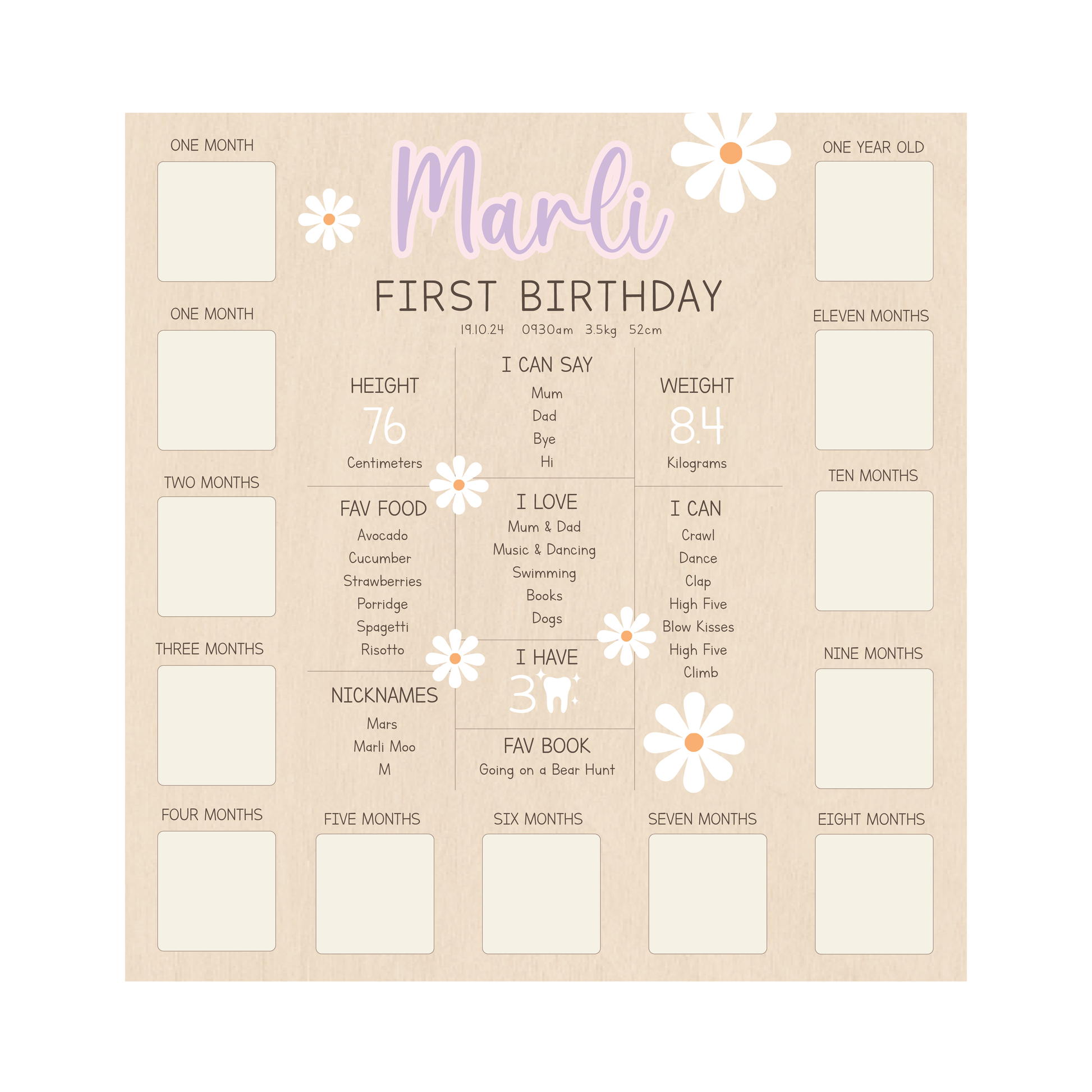 ✨ Personalised with your child’s milestones and space for monthly photos, this board captures their journey from tiny bud to one-year-old bloom.