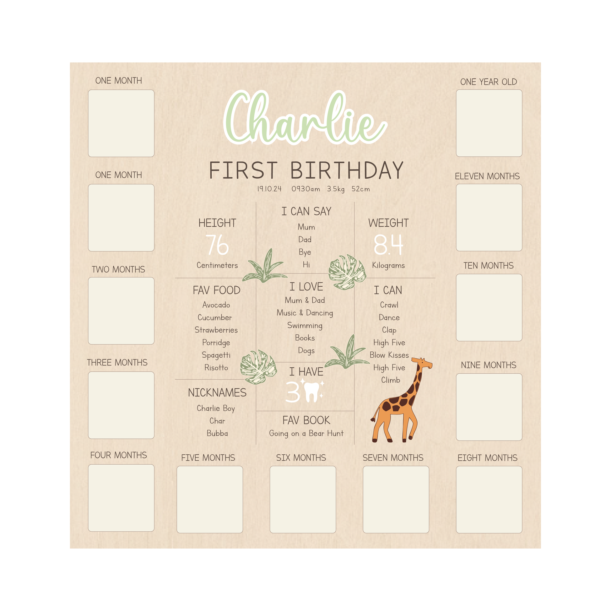 ✨ Personalised with your child’s milestones and space for monthly photos, this board is the perfect way to capture their journey from tiny cub to one-year-old adventurer.