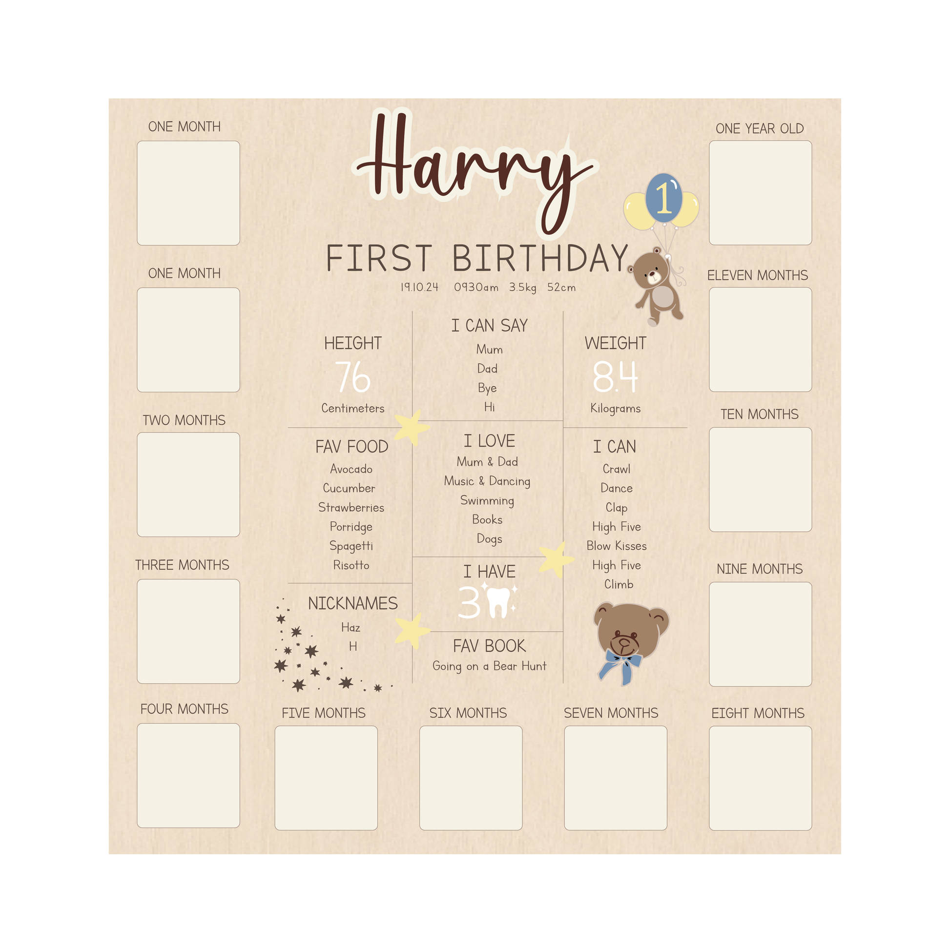 ✨ Personalised with your child’s milestones and space for monthly photos, this board is the sweetest way to capture their journey from tiny newborn snuggles to turning one.